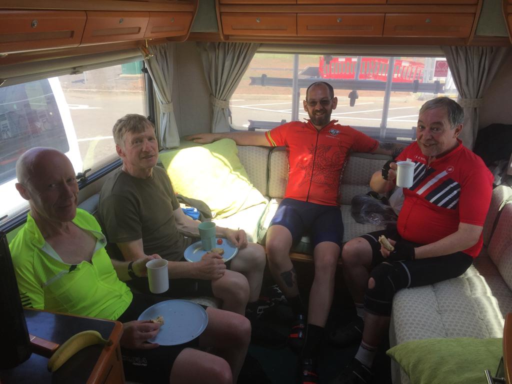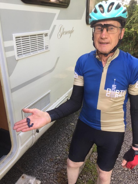 From Chepstow we rode on the B4228 to get to Coleford then the B4226 through the Forest of Dean. The final 6 miles to Westbury on Severn was on the main road and I suffered the first puncture with the rear wheel finding a nail in the road, I took the easy option and left it up to Nick to put a new innertube in, he did it in superfast time.