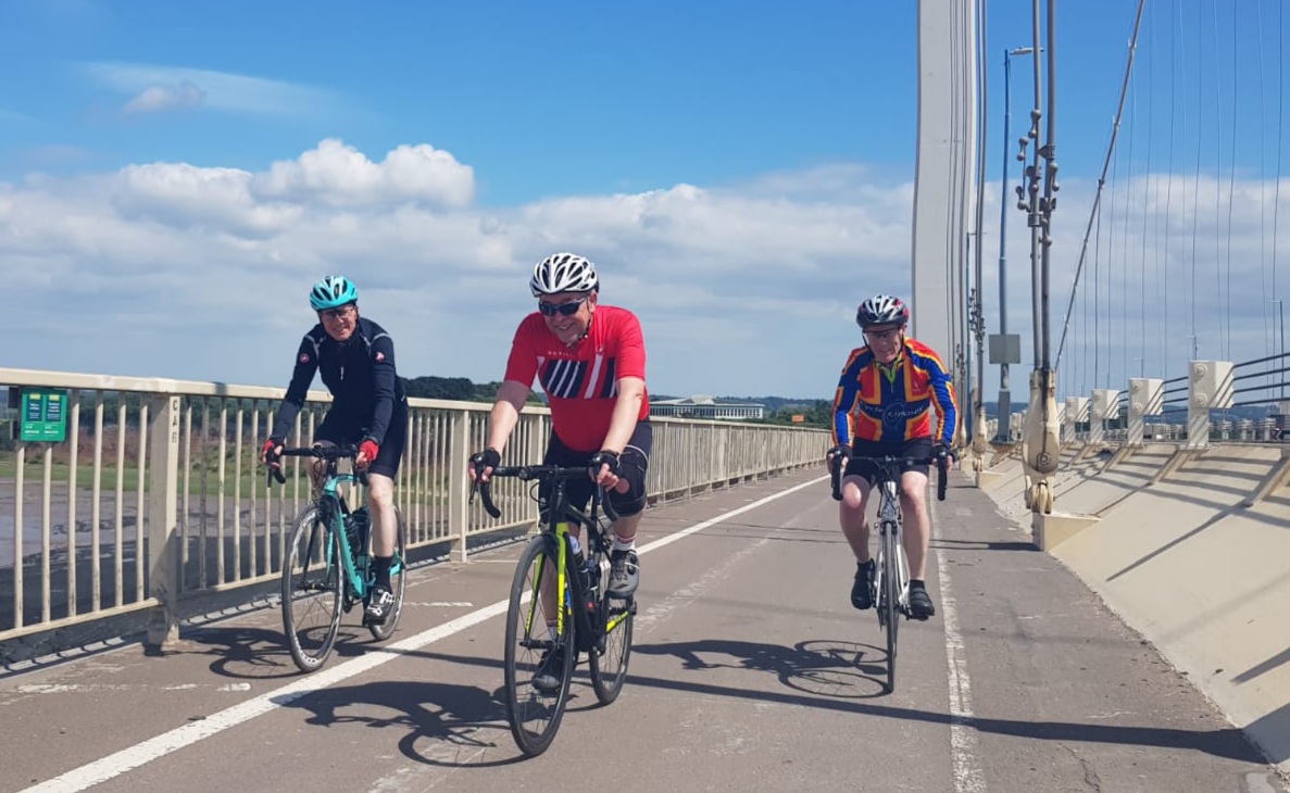 We got to Yatton at 11:00 am where Tim was waiting for us, we all had a Tea/Coffee in the station cafe and left half an hour later following the cycleroutes 26 and 410 on minor roads over the M5 to Clevedon then alongside the M5 to get onto the motorway bridge to cross over the River Avon.