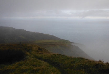 There was no change to the weather as I was packing up and with no visibility I would probably abandon my plan to wild walk over the hills to the lighthouse and just stay on the Kintyre Way to Southend.