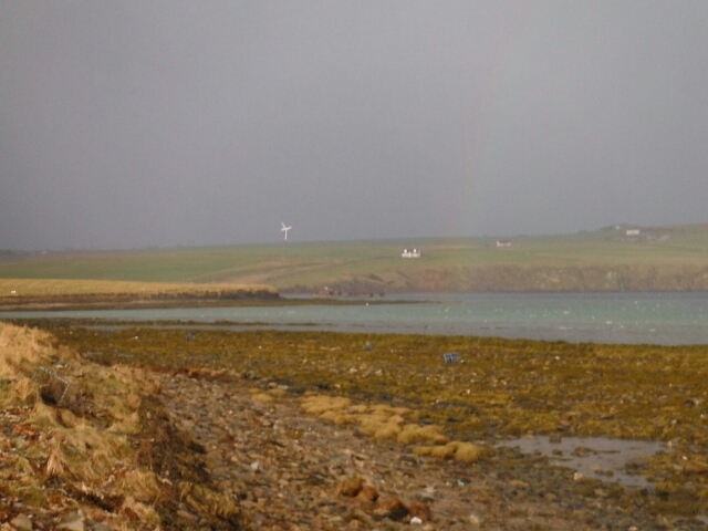 I set off just before 9.00 in full waterproofs, going along Berstane Loan then past Quoydandy and down to Inganess Bay. It was a strong westerly with heavy showers and for the moment the weather was behind me.