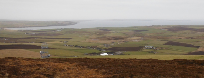 Leaving the house, with the dog, at 08:30 I went up to the trig pillar on Wideford Hill, it was cloudy but I wasn’t expecting any rain and there was just a light breeze.