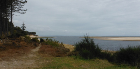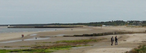 I wasn't expecting to come out of the forest until I rached Nairn but when I came across a footpath sign for Findhorn Bay I followed it and came to the bay just at the mouth of the river.