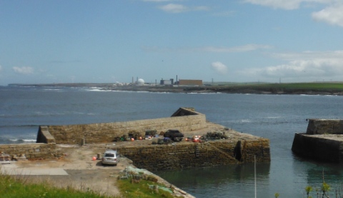 Looking over Fresgoe harbour to Dounreay |