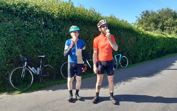 We continued on minor roads, going through North Curry and shortly after we cycled past an Ice Cream van which was stopped at a house in the middle of nowhere & Nick persuaded us to stop and get one. It was 17:30 and we still had to go through Othery, Shapwick & Wedmore before getting to our destination in Cheddar.