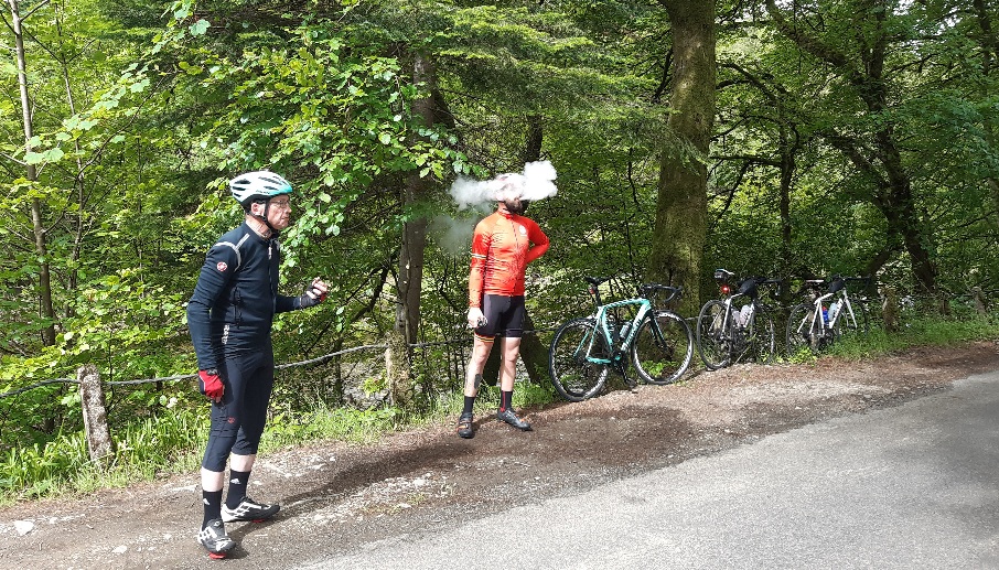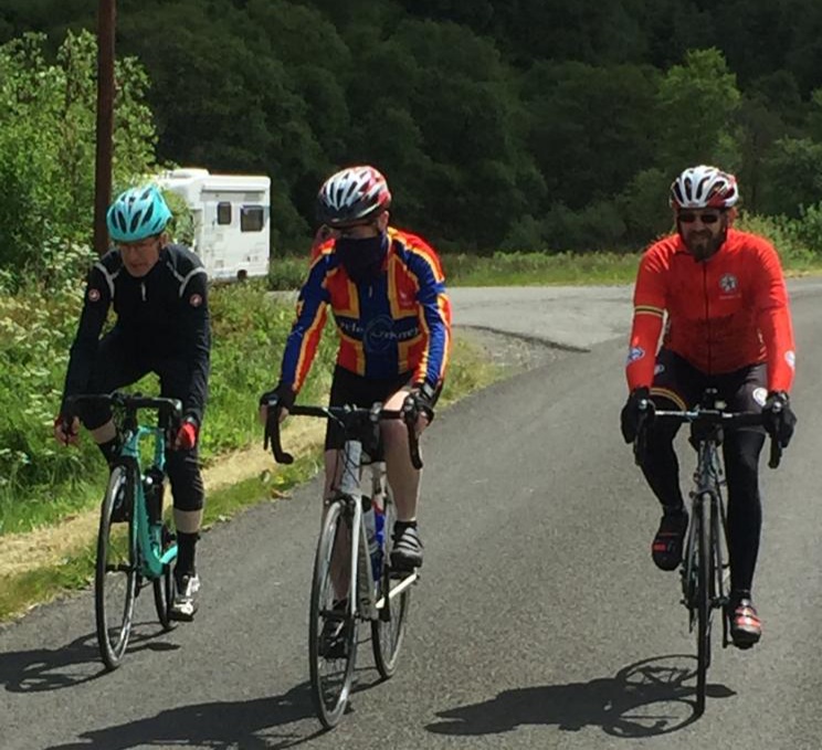 We did the first 3 climbs before lunch with a couple of short breaks and met up with Rodney just before Ettrick at 12:30, after 40 miles, for our lunch break.